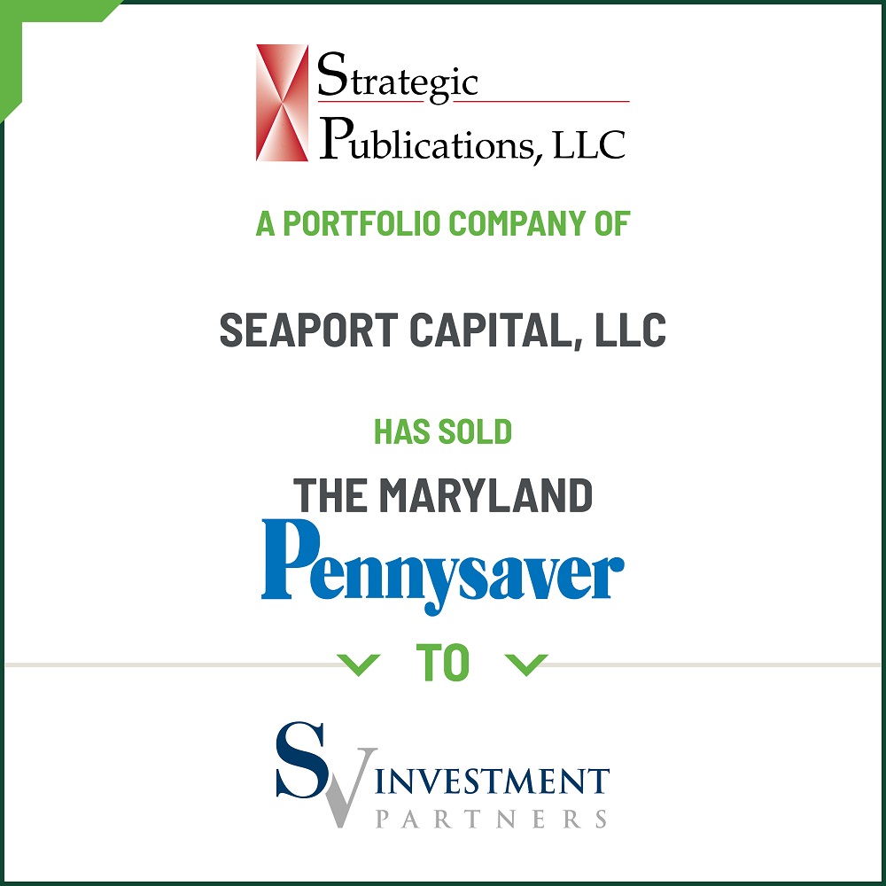 Strategic Publications, a portfolio company of New York-based private equity firm Seaport Capital, has sold the Pennysaver Group, the leading publisher of community-based, advertising supported, direct-mail shoppers in the Baltimore-Washington metropolitan area, to SV Investment Partners, a New York-based private equity firm, in partnership with new management.